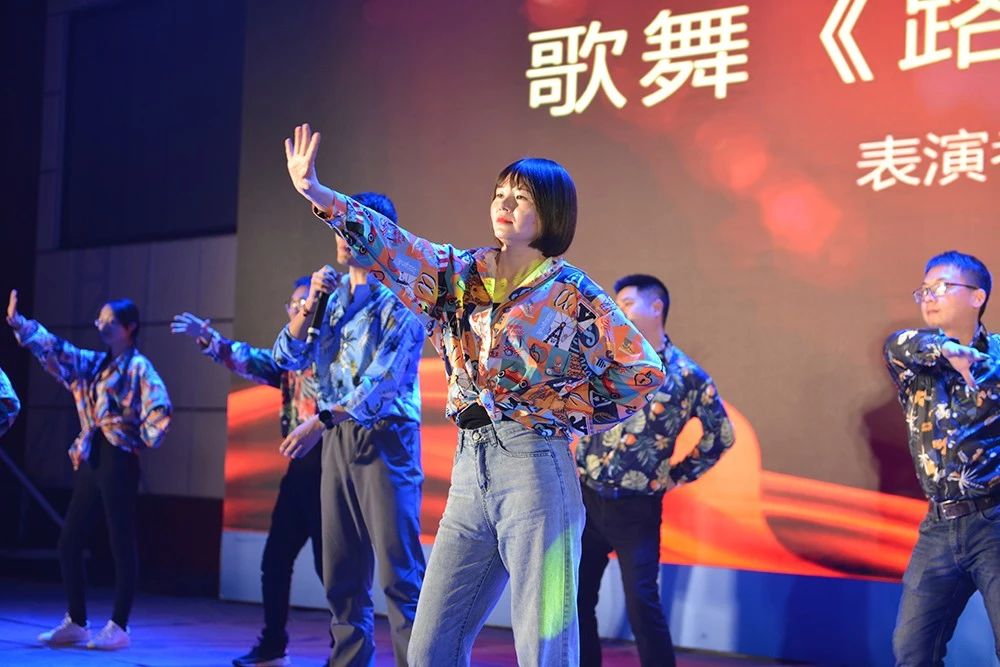 ▲由船舶事業(yè)部和營(yíng)銷中心的小伙伴為我們帶來(lái)的歌舞《路燈下胡小姑娘》 攝影:郭巍