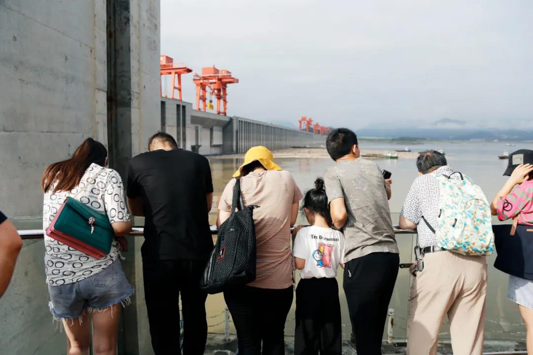 體驗三峽升船機的游客們