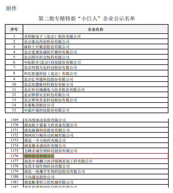 日前,微特技術(shù)有限公司通過(guò)國(guó)家工信部公示,入選第二批專精特新“小巨人”企業(yè)。