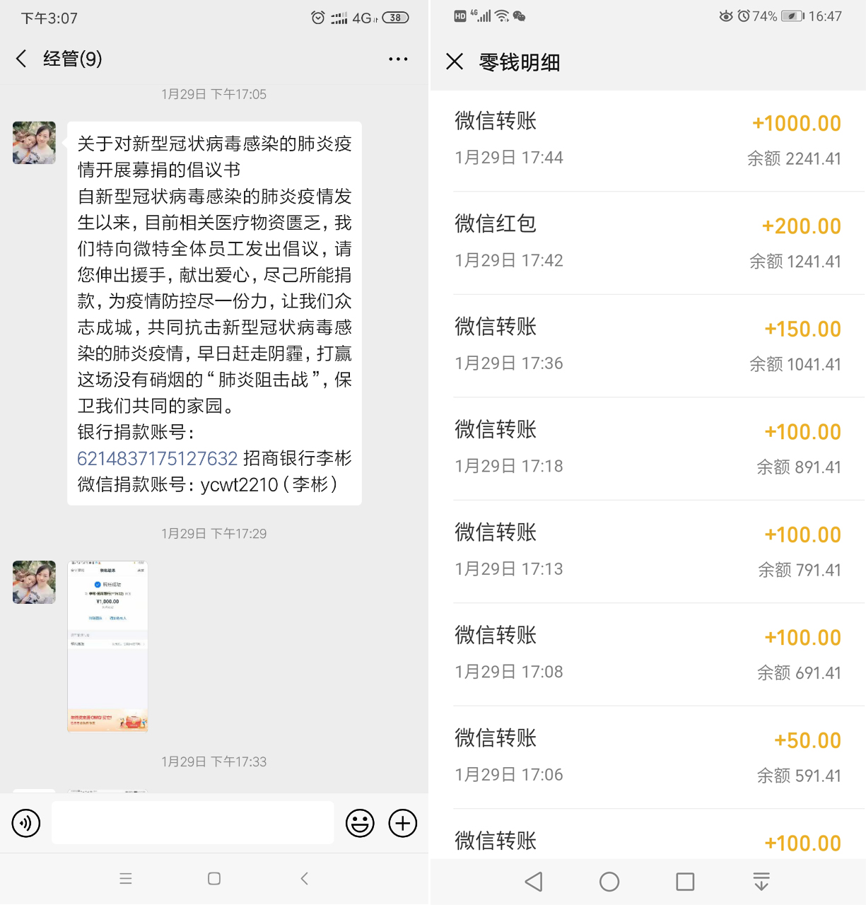2020春節(jié)以后新型冠狀病毒肺炎疫情防控形勢(shì)嚴(yán)峻,宜昌普遍面臨醫(yī)療物資緊缺、防疫人員超負(fù)荷工作等嚴(yán)峻問題。微特公司緊急號(hào)召在職員工捐款捐物,為緩解醫(yī)療物資缺乏、緩解疫情蔓延貢獻(xiàn)力量。1月29日,微特在公司內(nèi)部微信群發(fā)起《募捐倡議書》,假期中的各地員工紛紛響應(yīng)慷慨解囊,獻(xiàn)出愛心。
