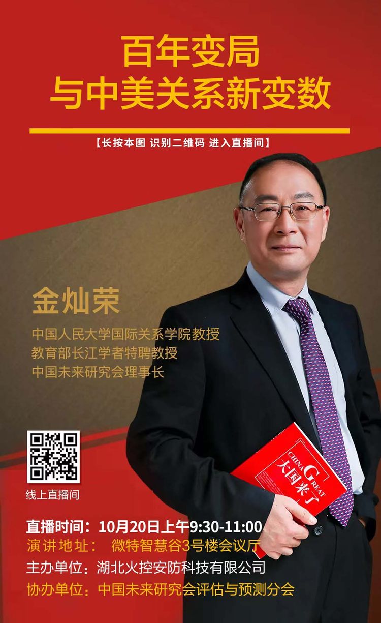 10月20日上午,“百年變局與中美關(guān)系新變數(shù)”專題講座在微特智慧谷會議廳成功舉行。此次活動由湖北火控安防科技有限公司主辦,微特智慧谷協(xié)辦,邀請教育部長江學者特聘教授、中國未來研究會理事長、中國人民大學國際關(guān)系學院金燦榮教授為主講嘉賓。本次講座吸引200余名聽眾到場,會場座無虛席,同時全網(wǎng)實時直播。