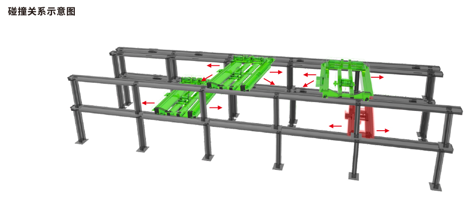 橋機(jī)工作時(shí)需要在軌道上來回移動(dòng)吊運(yùn)貨物,大部分廠房橋機(jī)軌道上都會(huì)采用多機(jī)配合作業(yè)。橋機(jī)之間難免會(huì)發(fā)生碰撞,而機(jī)械限位防撞預(yù)警距離太短,年久失修都會(huì)導(dǎo)致相鄰、上下層軌道之間橋機(jī)作業(yè)時(shí)發(fā)生碰撞,導(dǎo)致事故發(fā)生。
