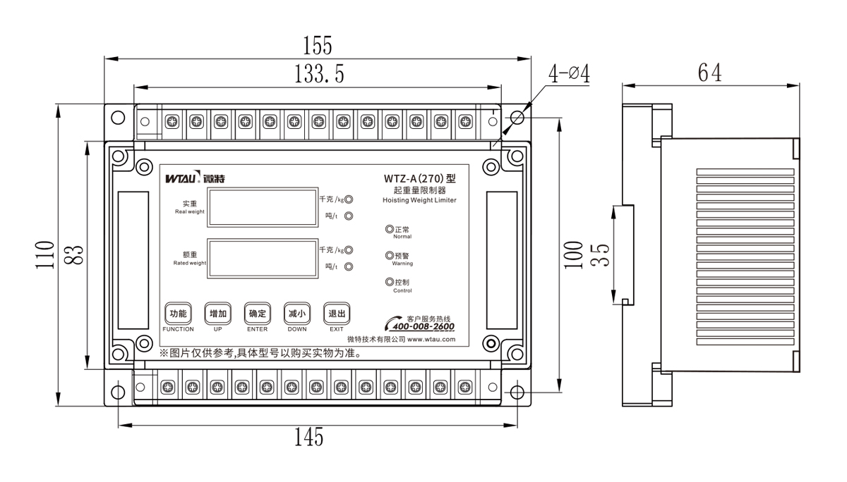 WTZ-A270型起重量限制器具有結(jié)構(gòu)合理、安裝方便、調(diào)試操作簡(jiǎn)單、工作可靠、精度高等一系列優(yōu)點(diǎn)。
